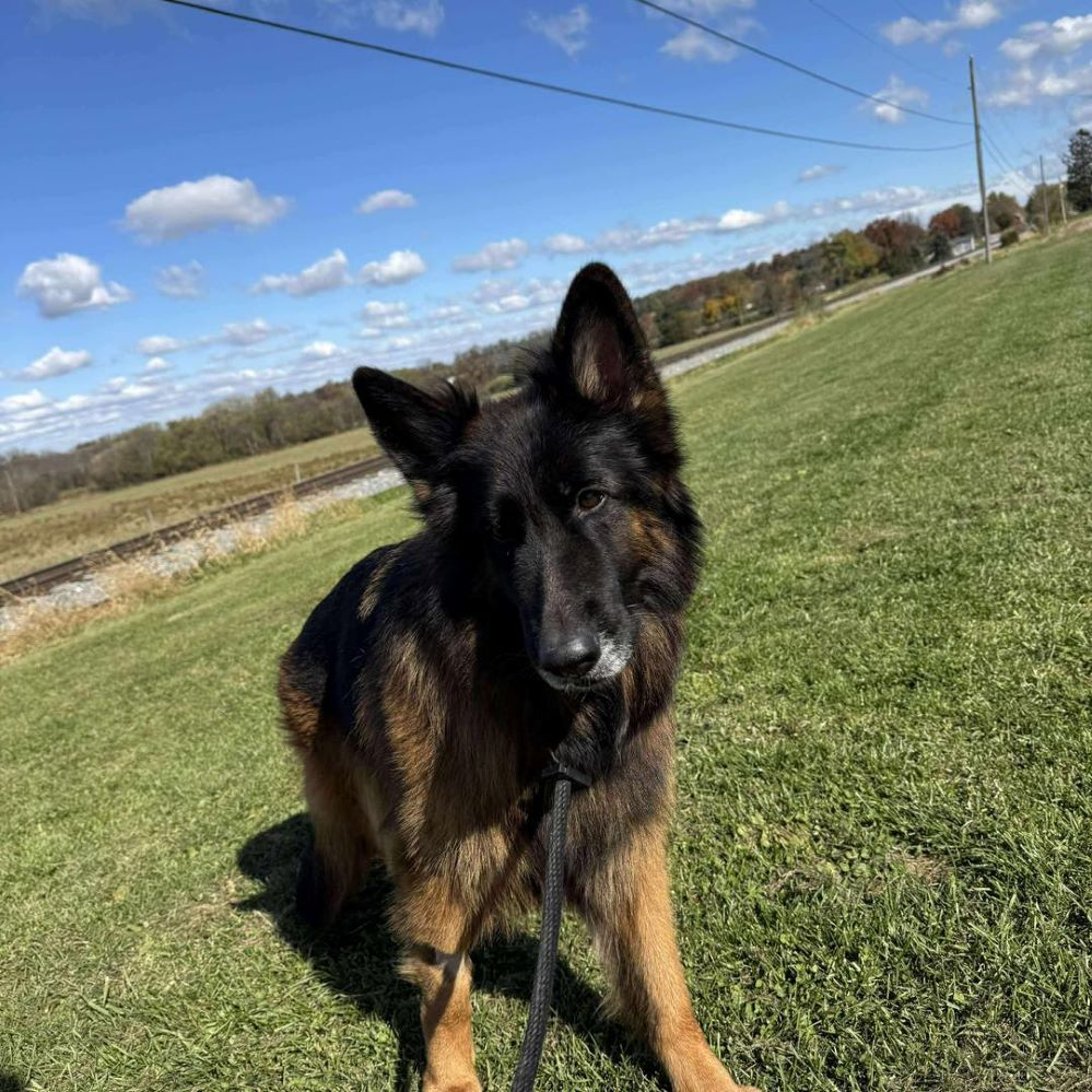 Sim is a fun-loving, curious companion who thrives on attention and playtime. She’s happiest when she’s part of the action, whether that’s going for a run, playing in the yard, or just soaking up affection from her favorite humans. She’s loyal, full of personality, and has an infectious zest for life that makes every day brighter. Sim is simply all about enjoying every ounce of life. As is true of the breed, particularly younger GSDs, Sim will thrive with continued training, clear boundaries, and consistent structure. She knows how to sit and shake paws, but she’s still working on perfecting her potty training and leash manners. Her curiosity sometimes gets the best of her—she may zigzag on walks, pull ahead to investigate something fascinating, or stubbornly stop when something catches her eye—but with patience, direction, and positive reinforcement, she’s eager to learn and please.