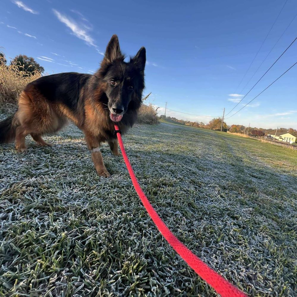 Angie is a playful, intelligent girl who adores the outdoors. She enjoys her daily adventures and seems to smile during her walks, especially in the crisp fall air. While she’s well-socialized with people, she can be a bit hand-shy and cautious in new situations. With time, patience, and understanding, Angie adjusts beautifully and bonds deeply with those she trusts. Creating a healthy bond will be key to her success. Like many shepherds, Angie thrives in an environment that offers structure, routine, and confident leadership. She’s eager to please and will blossom with continued training — not only to strengthen her bond with her forever family but to help her grow into the wonderful, well-mannered companion she’s meant to be.